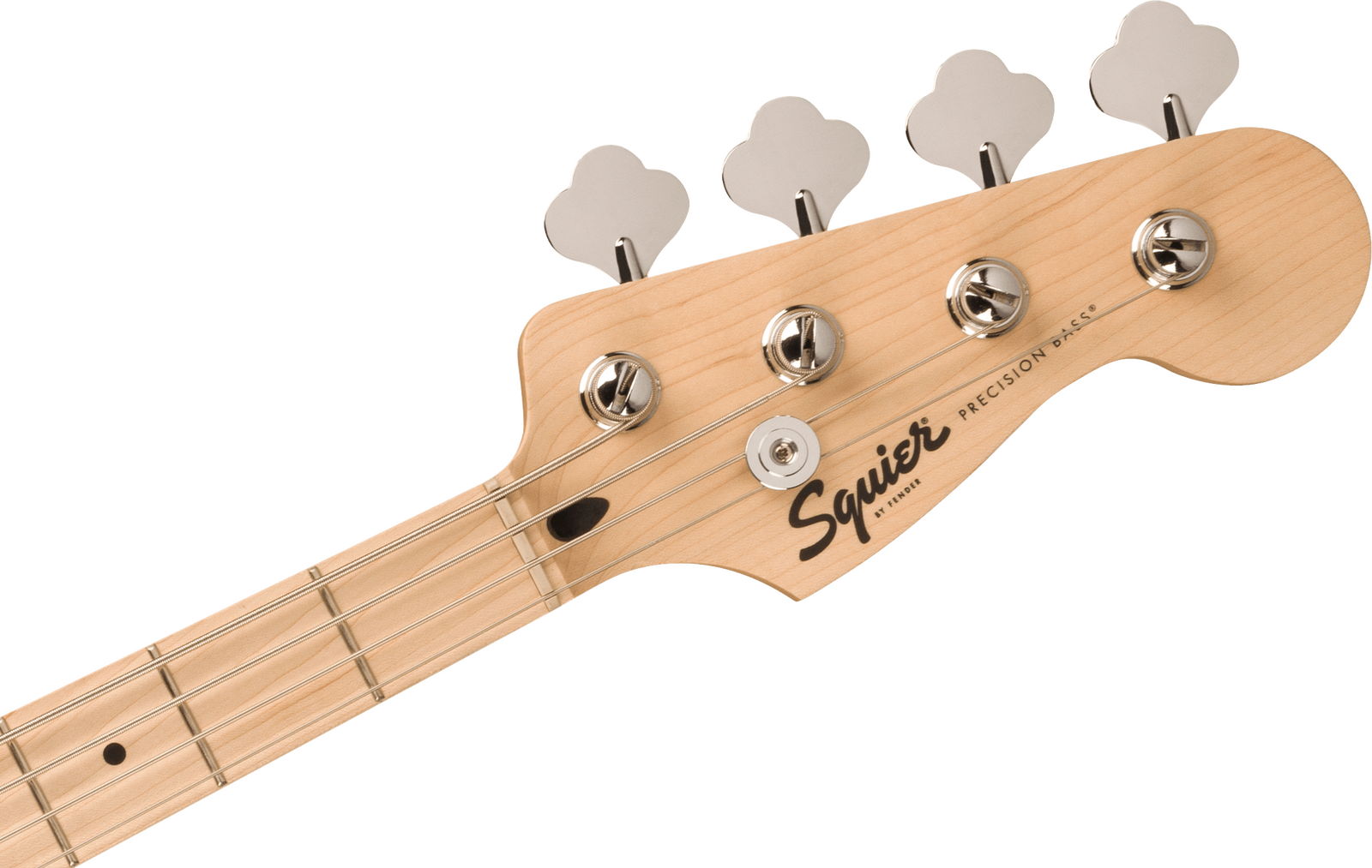 The Squier Sonic® Precision Bass® is ready to launch any musical adventure into warp speed, offering iconic Fender® style and inspiring tone for players at any stage. This P Bass® sports a slim and inviting "C"-shaped neck profile with a narrow 1.5" nut width and a thin, lightweight body for optimal playing comfort while a Squier® split single-coil pickup delivers punchy bass tone. Further details of this model include a 4-saddle hardtail bridge for precise intonation adjustment, open-gear tuning machines for smooth, accurate tuning and durable chrome-plated hardware that is sure to catch the spotlight.