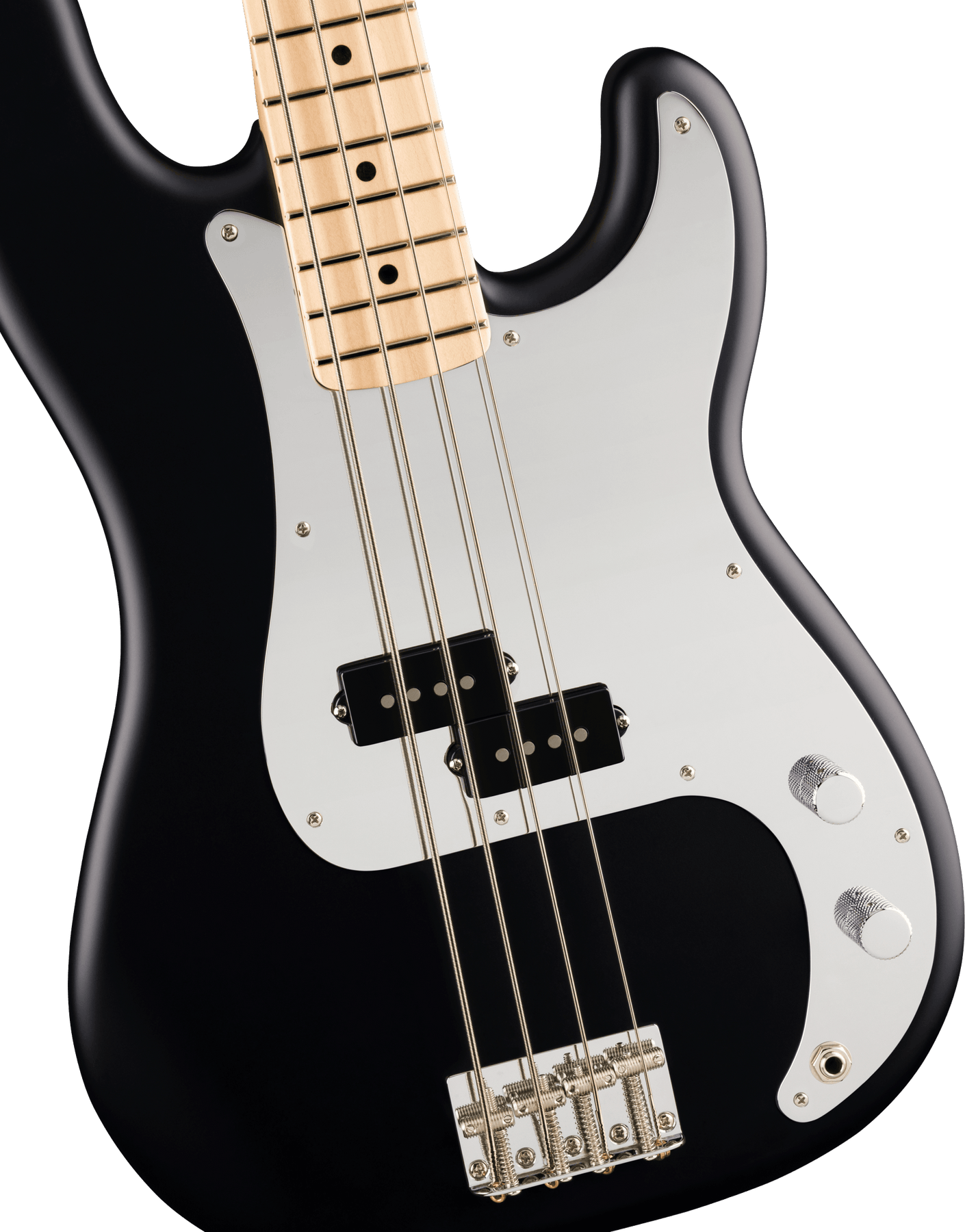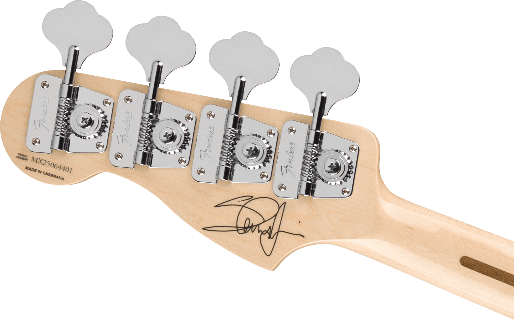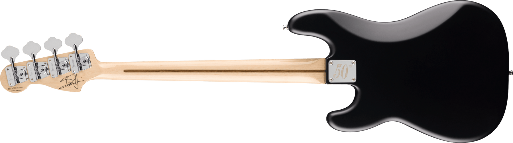 Steve Harris' dynamic basslines have made him one of the most influential metal bassists alive. Harris has stayed true to his battle-hardened Fender® Precision Bass® over the years, and his new 50th Anniversary signature model now comes in an elegant Satin Black finish with an all-maple neck and body with complementing mirrored pickguard. Other ironclad features include a powerful Precision split P Bass® pickup, Fender® Vintage Precision Bridge, Fender® round-wound strings and Harris' signature on the back of the headstock. A set of Rotosound® Steve Harris Signature flat-wound strings are included in the gig bag.