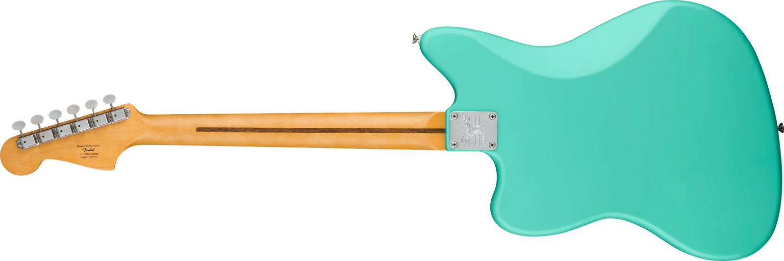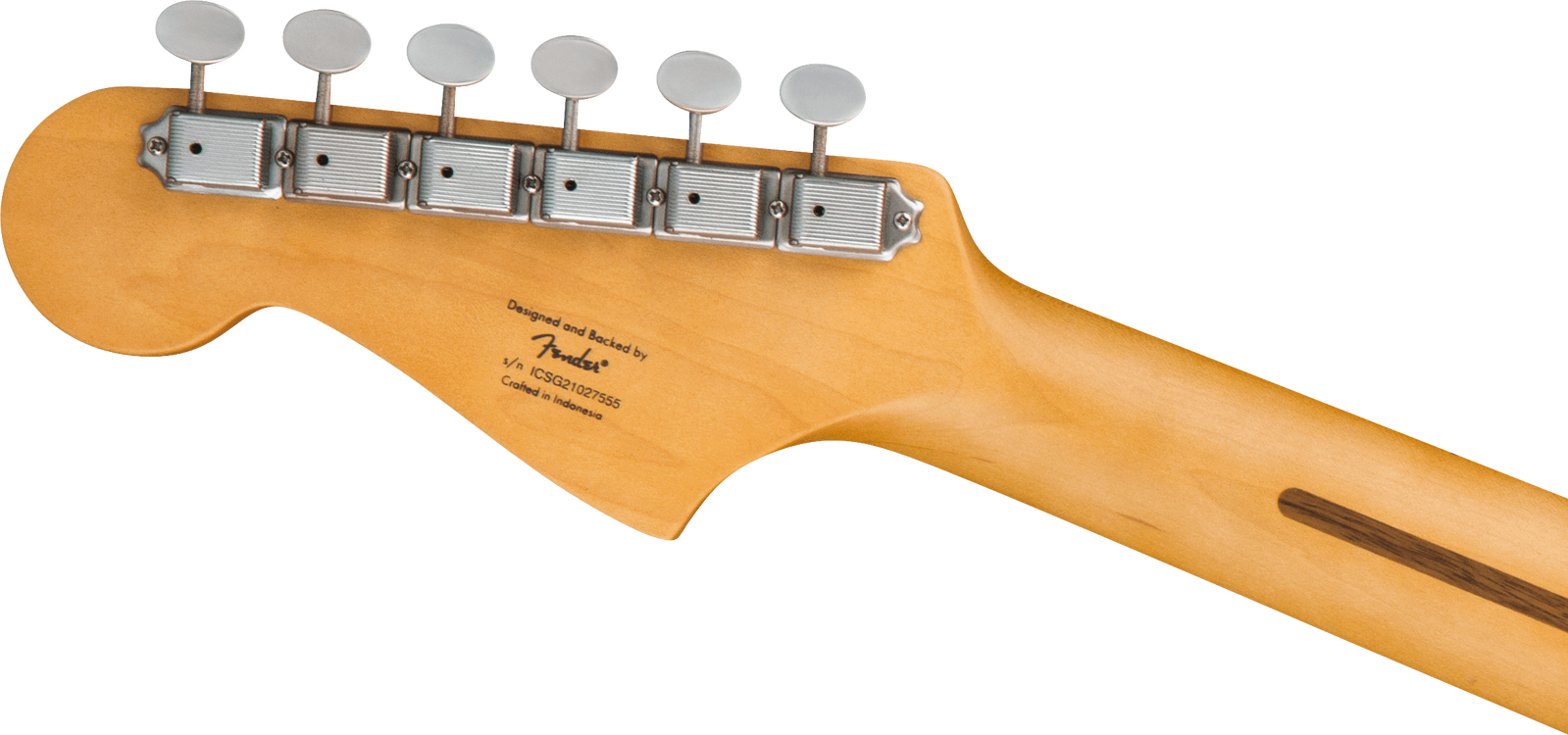 The Squier® 40th Anniversary Jazzmaster®, Vintage Edition is a soulful tribute model trimmed with a collection of classic features for the retro-minded Squier enthusiast. Featuring aged chrome hardware, an anodized aluminum pickguard, a vintage-tinted maple neck, an engraved anniversary neck plate and satin finish throughout, this Jazzmaster honors the heritage of the Squier catalog and its ancestry. Player-friendly refinements of this commemorative model include a slim and comfortable “C”-shaped neck profile for an easy playing feel, vintage-style tuning machines and 6-saddle floating bridge and tremolo for authentic performance and style, and Fender-Designed single-coil pickups with alnico 5 magnets for familiar Jazzmaster tone.