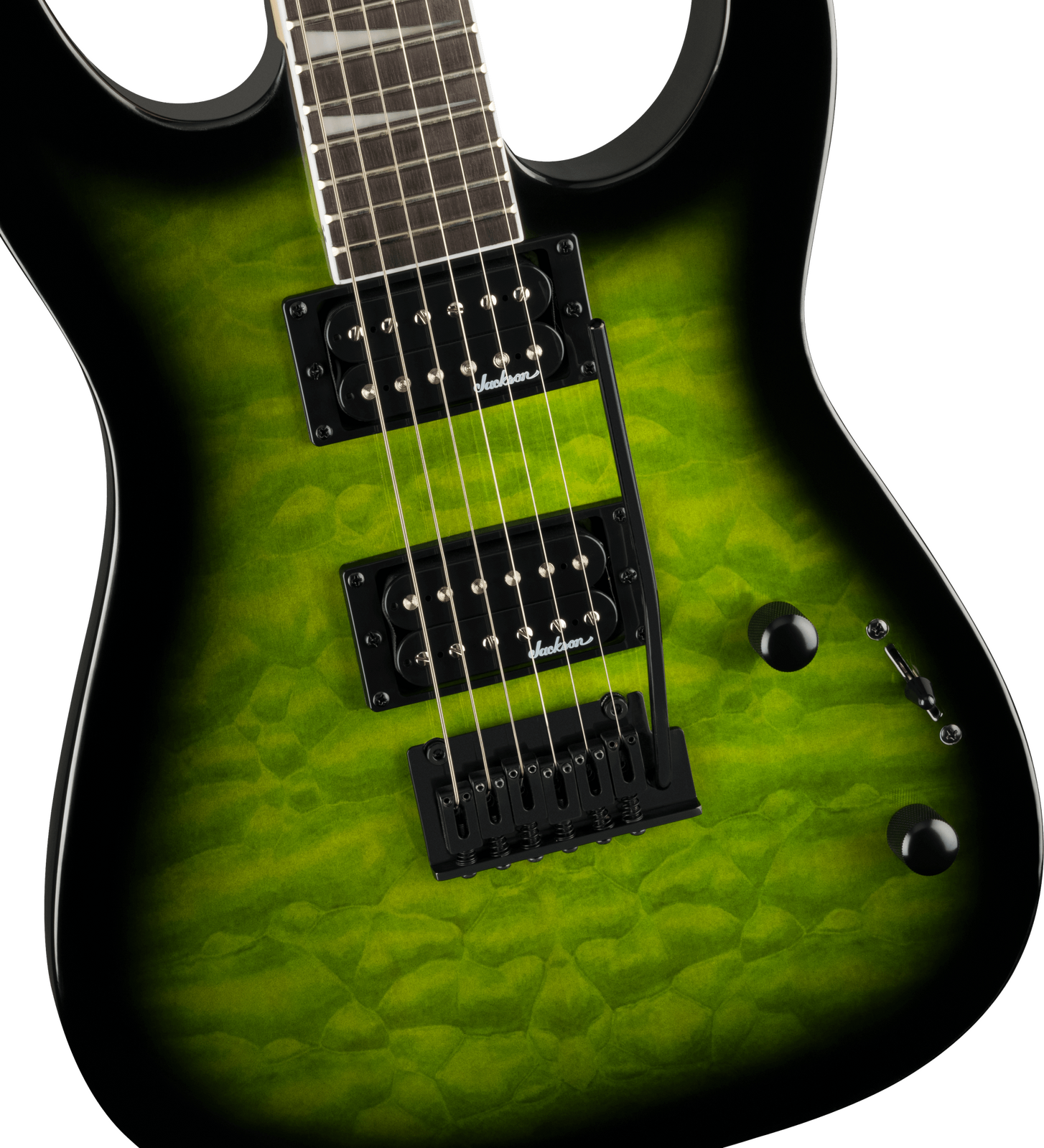 A pair of Jackson high-output humbucking pickups with ceramic magnets cranks out clear tone with plenty of girth, and can be shaped with a three-way blade switch and single volume and tone controls.