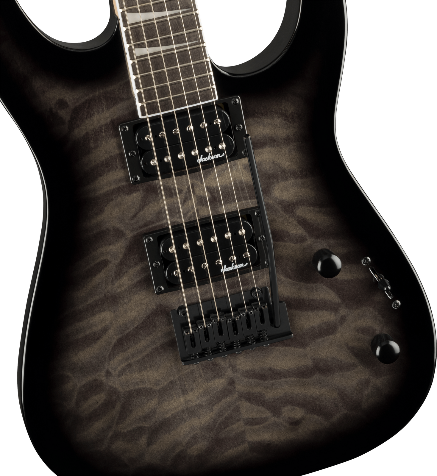 A pair of Jackson high-output humbucking pickups with ceramic magnets cranks out clear tone with plenty of girth, and can be shaped with a three-way blade switch and single volume and tone controls.