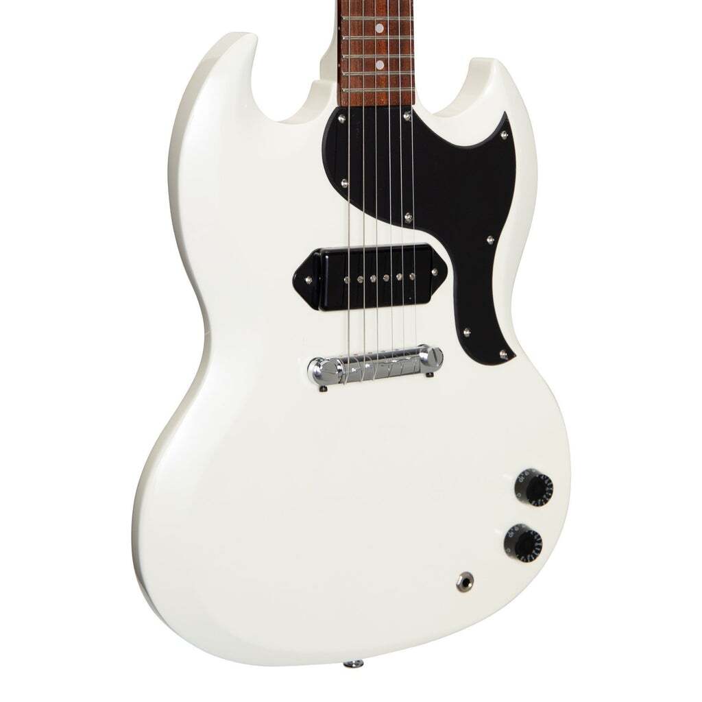 The SG-J52 revives the iconic student model solid guitar "junior" design. Featuring single dog ear P90 pickup, set-neck construction, medium 60's style neck profile, white button Kluson style tuners and vintage white finish, the Tokai SG-J52 screams vintage style and tone - without the vintage price tag.