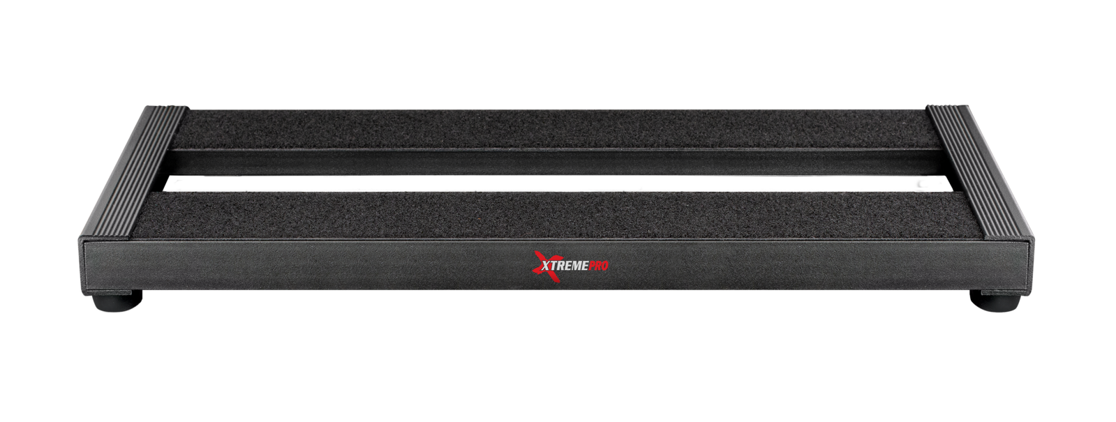 Flat, ergonomic design with 2 crossrails. Lightweight aluminium construction. Crossrails fitted with loop grip tape. Self-adhesive hook tape included to fit your effect units. Non-slip rubber feet.