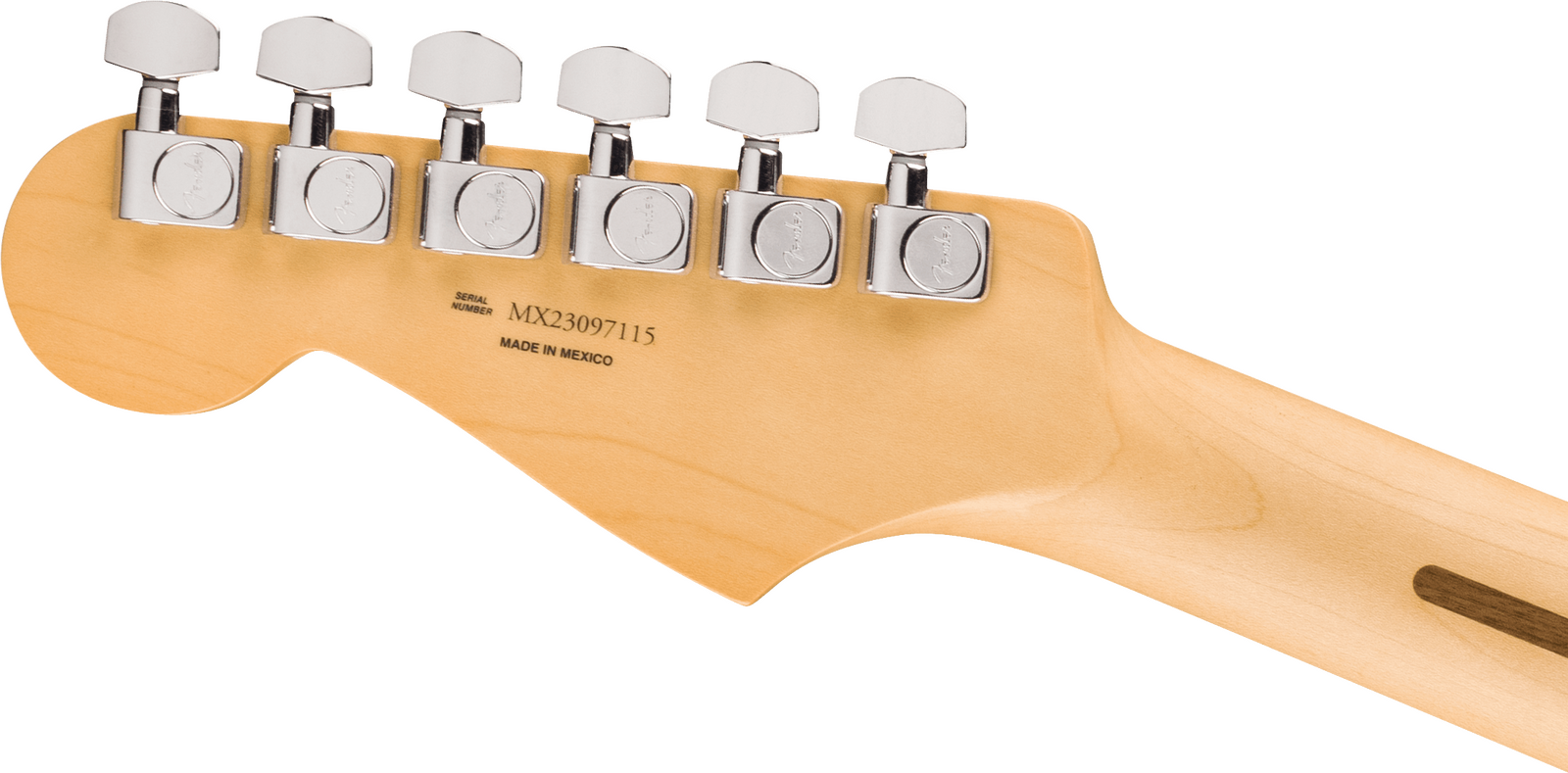 Respecting our heritage while maintaining our innovative spirit, the power trio of Player Series single-coil pickups are crisp and articulate - it's authentic Fender tone with a modern edge. The "Modern C"-shaped maple neck's comfortable contours and smooth finish are ideal for almost any playing style. By adding a 22nd medium jumbo fret to the contemporary 9.5"-radius fingerboard we've made it easier to express yourself musically. The updated 2-point tremolo design has smoother travel for enhanced playing feel while simultaneously giving you rock-solid tuning stability since there's less friction against the posts. Other features include master volume and tone controls, a 5-way pickup switch, 3-ply pickguard, synthetic bone nut, dual-wing string tree, sealed tuning machines and four-bolt "F"-stamped neck plate that marks this instrument as the real deal - as Fender as it gets.