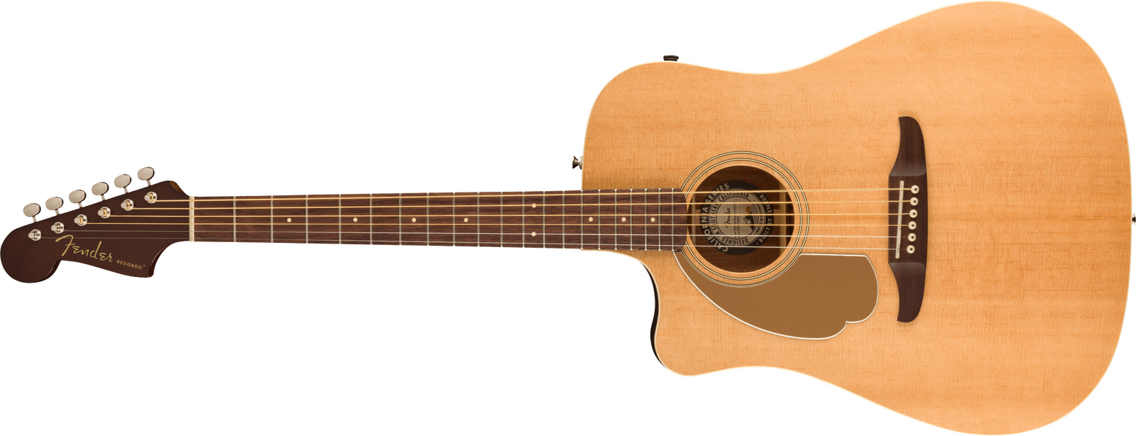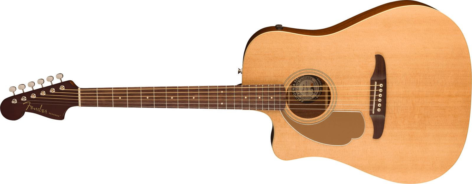 Crafted with an X-braced solid spruce top and sapele back and sides, the dreadnought body of the Redondo Player produces a deep, robust voice with exceptional projection and volume for a wide variety of musical settings. The nato neck is designed with an easy-to-play slim "C"-shaped profile, a 25.5" scale length, and a tilt-back 6-in-line headstock for a distinctive look born from Fender's electric guitar DNA. Other notable details include vintage-style tuning machines for smooth, accurate tuning, a GraphTech® NuBone® nut and saddle for detailed harmonic character. With elegantly integrated controls for a sleek, modern look, the onboard Fishman® Flex preamp system allows faithful reproduction of the guitar's natural sound when plugged into an amplifier or recording device.