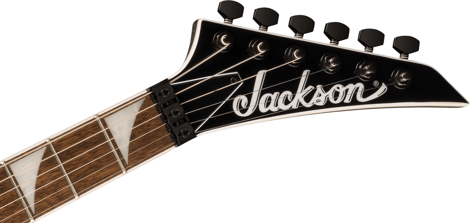 A sleekly contoured basswood body and pure Jackson neck-through-body construction ensure ergonomic comfort during long sets, along with monstrous sustain and smooth playing all the way up to the 24th jumbo fret. Graphite-reinforcement rods run through the maple neck, protecting it against environmental depredations, while the ultra-fast 12"-16" compound radius bound laurel fingerboard is built from the get-go for easy chording and riffing near the nut and rapid, fret-out-free leads as you move up the neck.