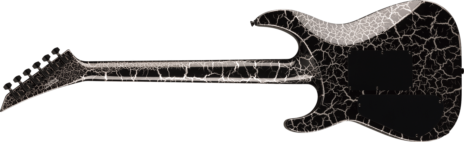 - Available in Silver Mercury or Bloodshot Crackle with black Jackson pointed 6-in-line headstock and black hardware; Crackle finish is on both front and back, including the neck back.