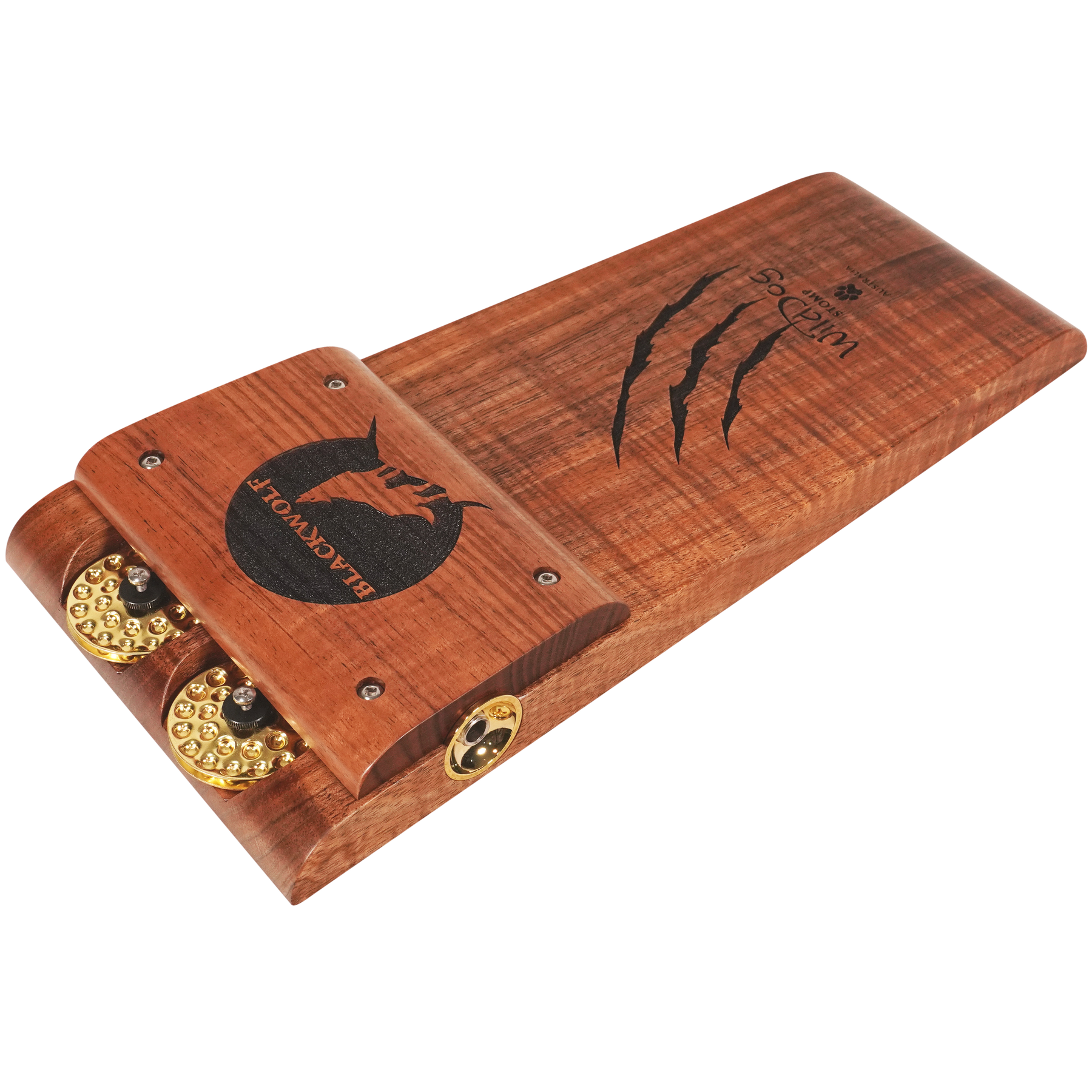 Built from premium Blackwood, the Blackwolf delivers a deep howling bass tone. Finished with etched claw marks and premium brass jingles, it stands as the big dog of the range, crafted for players who want commanding power underfoot.
