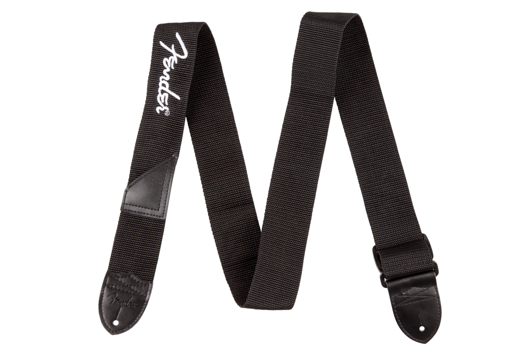 Fender Fender® Logo Strap, Black/White Logo, 2"
