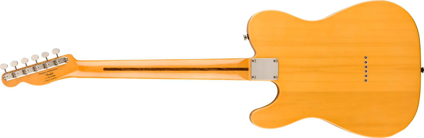A celebration of the birth of the Tele® in the early 1950s, the Classic Vibe '50s Telecaster creates incredible tone courtesy of the Fender-Designed alnico single-coil pickups. Player-friendly features include a slim, comfortable "C"-shaped neck profile with an easy-playing 9.5"-radius fingerboard and narrow-tall frets, as well as a vintage-style Telecaster bridge with barrel saddles and string-through-body design. This throwback Squier model also features 1950s-inspired headstock markings, rich-looking nickel-plated hardware and a slick vintage-tint gloss neck finish for an old-school vibe.